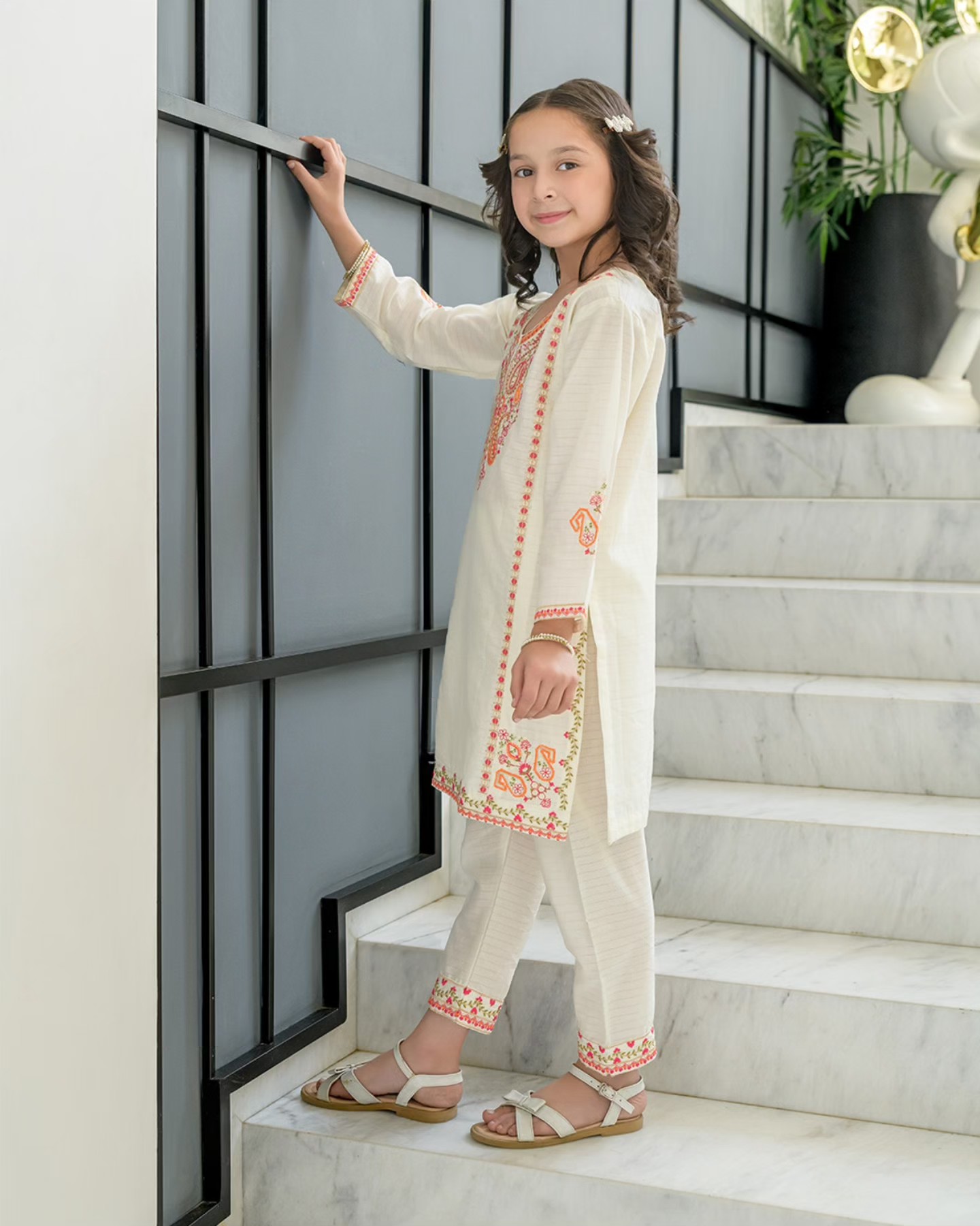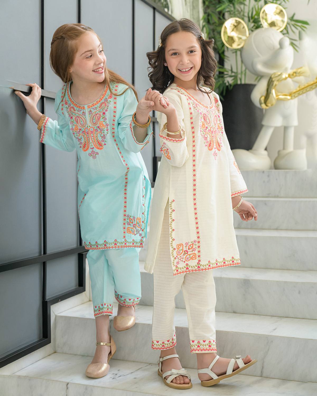Additional Description: Gender: Girl Outfit Type: Eastern Style: Kurta Set Package Includes: 2 Piece-Top & Bottom Fabric: Pure Cotton Lawn Work Technique: Embroidery Disclaimer: Actual product color may vary slightly from the image.